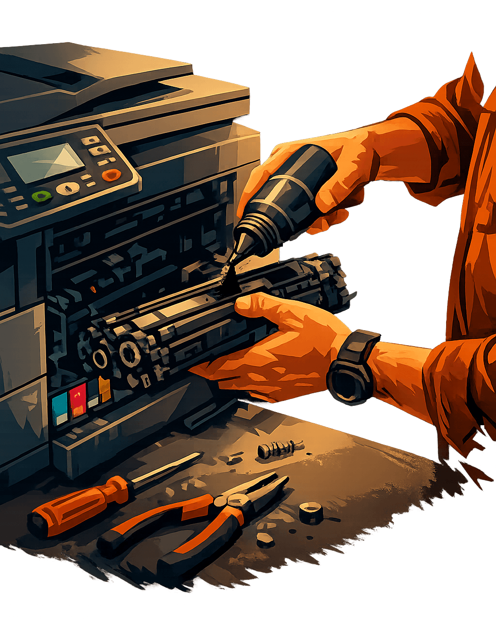 Берём на себя обслуживание и поддержку оргтехники: принтеров, МФУ и сканеров в рабочем состоянии.
